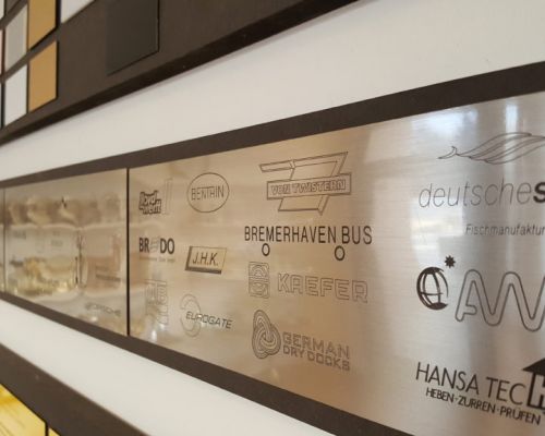 Wir fertigen hauptsächlich Industriegravuren für Anlagen wie Heizungs-, Klima-, Elektro- und Maschinenanlagen. Darüber hinaus beschildern wir im Werftbereich von den Maschinenräumen bis hin zur Kabinennummerierung von Schiffen. Neben den Diamantgravuren (oberflächliche Gravuren) bieten wir Fräsgravuren an – hierbei wird tief in das Material graviert, so dass die Schilder mit Farbe ausgelegt werden können.